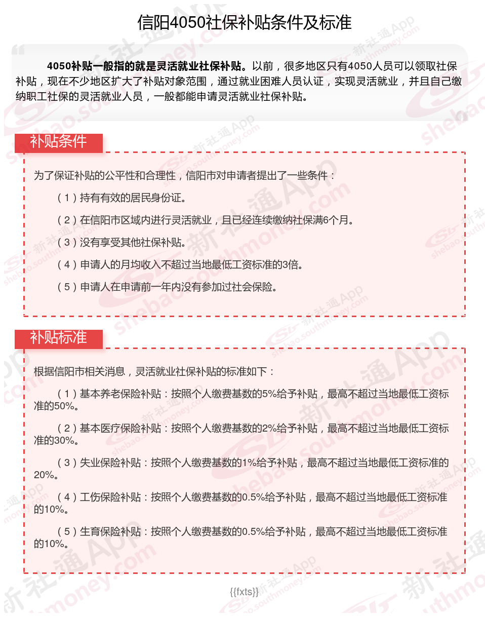 二、2025年信阳4050社保补贴标准及条件,最新如下: