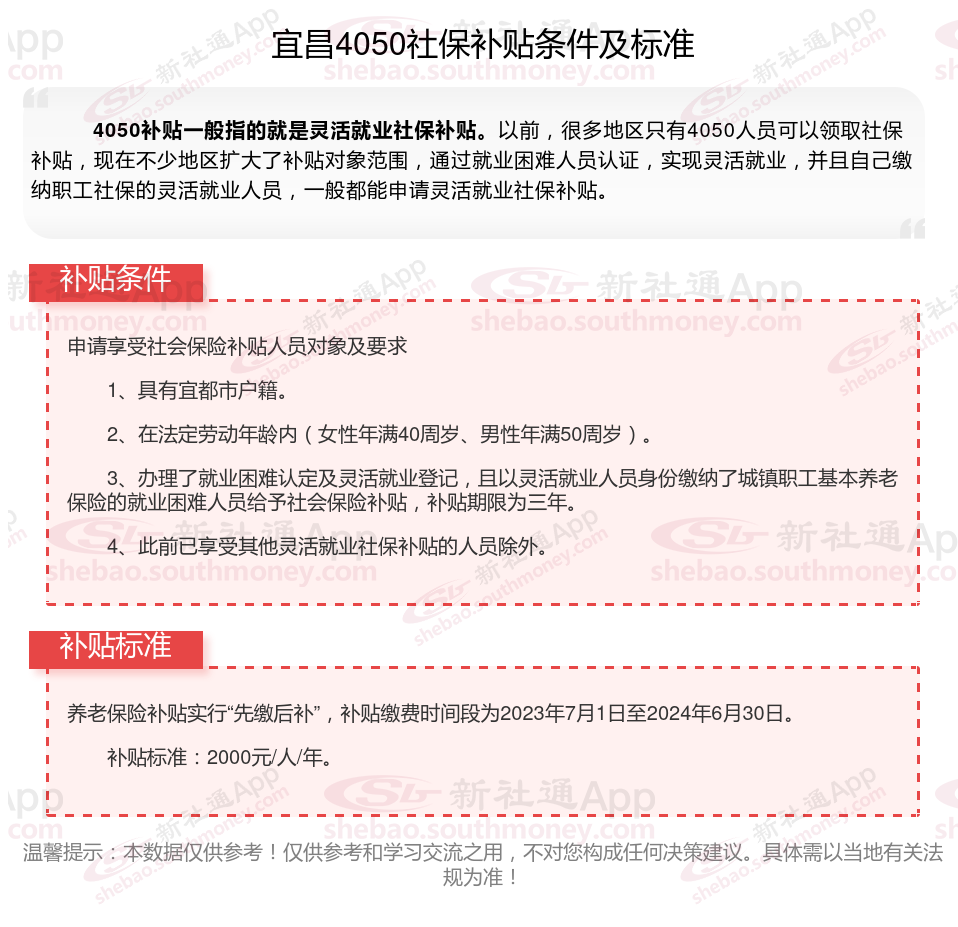 二、宜昌4050社保补贴标准及条件2025年最新消息