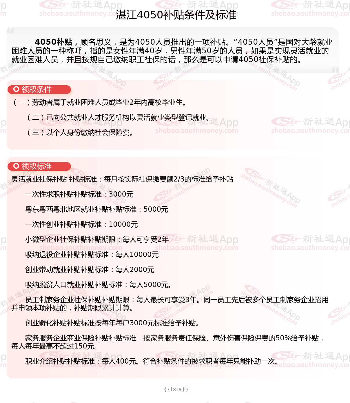 以上就是湛江4050灵活就业社保补贴的相关内容,欢迎关注新社通/下载新社通APP了解更多五险一金专业资讯。