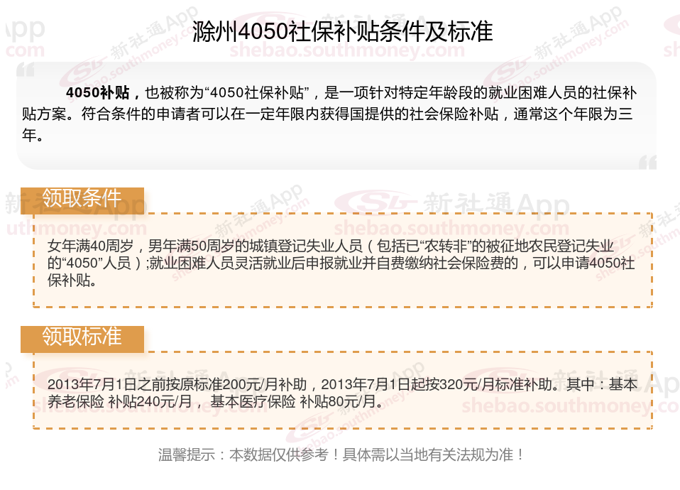 二、2025年滁州4050社保补贴标准是多少?领取条件是什么?