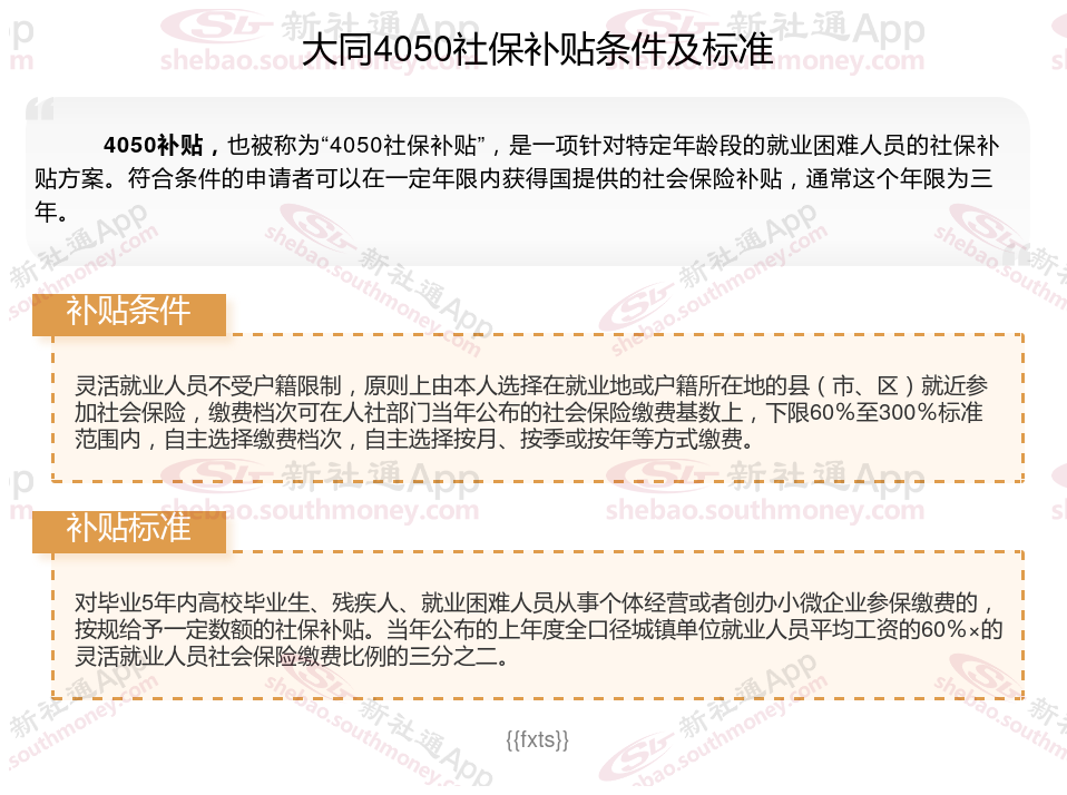 2025大同灵活就业4050社保补贴是一项面向特定年龄段的就业困难人群的社会保险补贴。