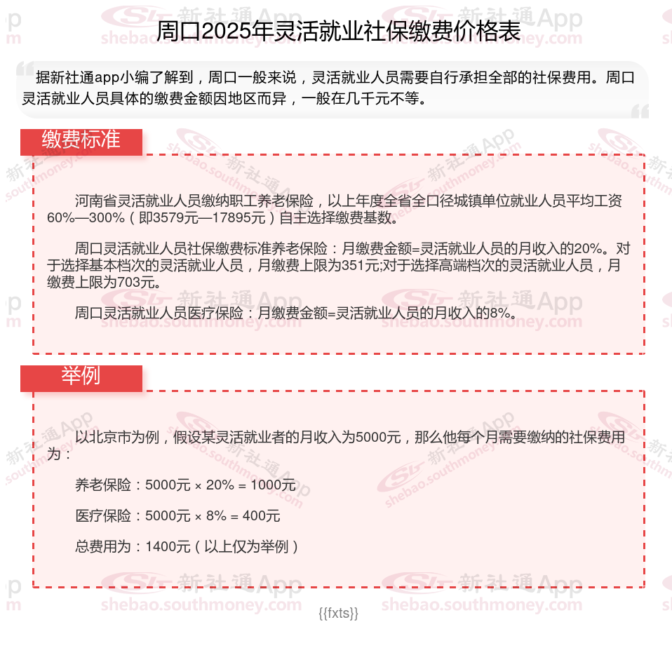 周口灵活就业人员的社保缴费标准是多少?根据新社通app-社保缴费查询工具提供的最新数据如下:
