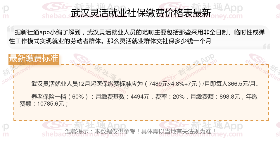 武汉灵活就业社保缴费标准来了 灵活就业社保最低要交多少钱?根据新社通app-社保缴费查询工具提供的最新数据如下: