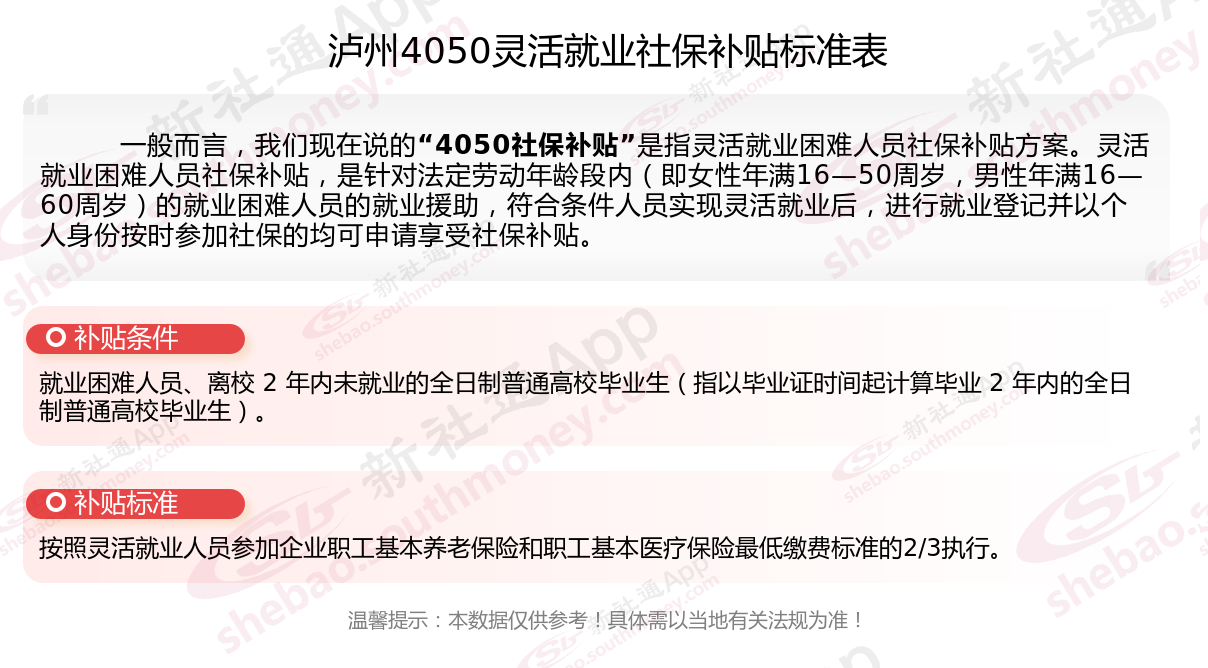 以上就是泸州4050灵活就业社保补贴的相关内容,欢迎关注新社通/下载新社通APP了解更多五险一金专业资讯。