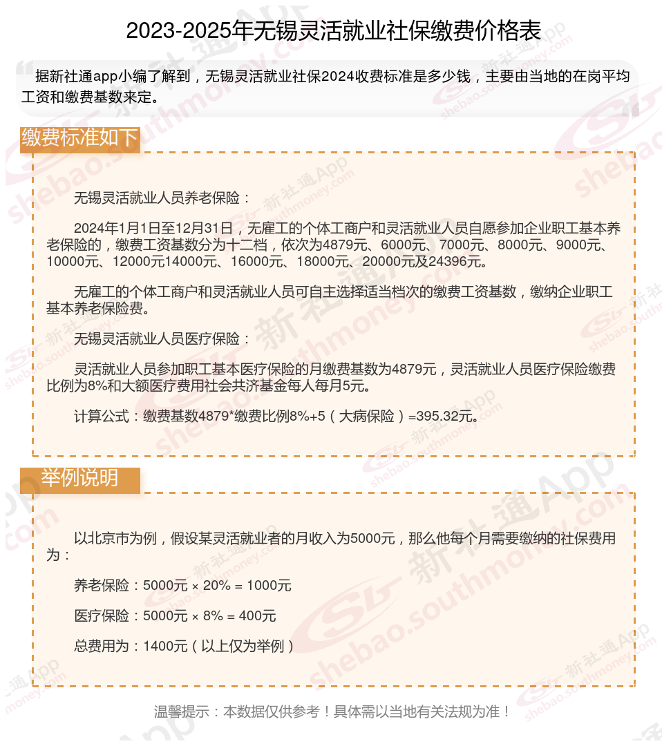据新社通app数据显示,无锡灵活就业人员养老缴费基数2024-2025年最新标准如下: