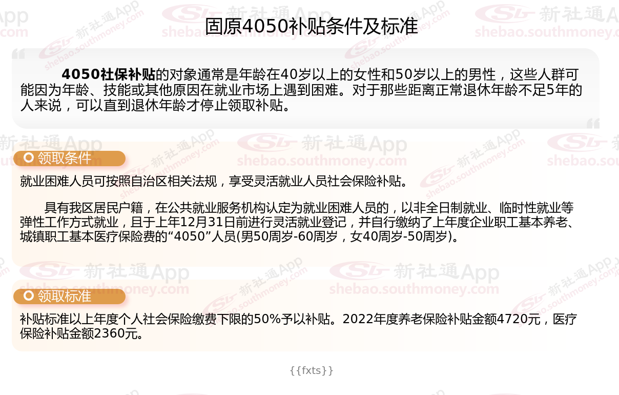 二、2025年固原灵活就业4050社保补贴标准及条件是什么?来了解一下