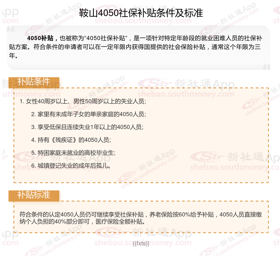 二、2025年鞍山4050社保补贴标准及条件,最新如下: