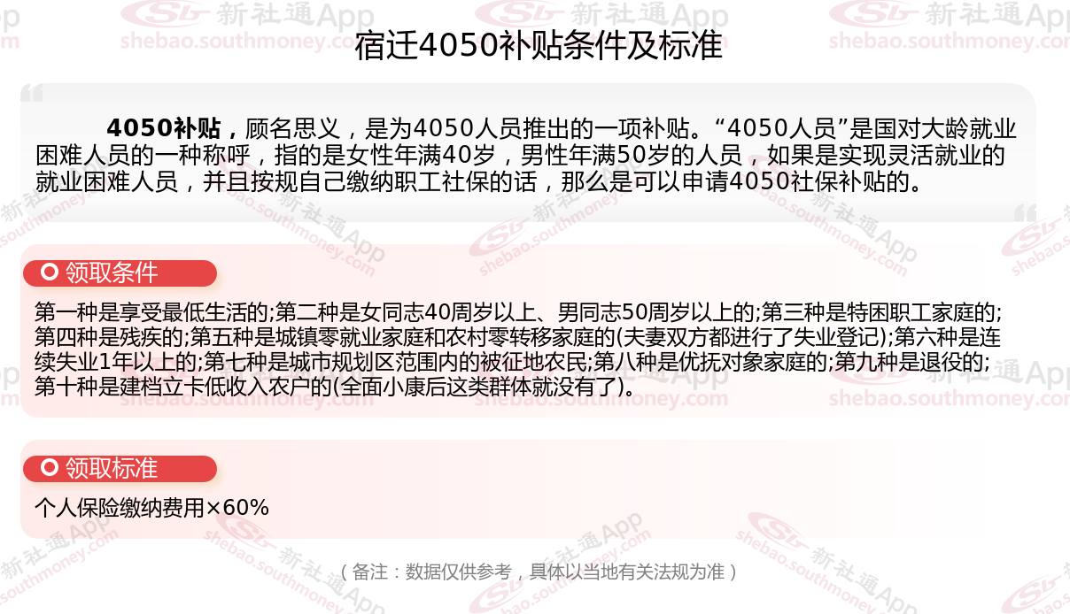 以上就是宿迁4050灵活就业困难人员社保补贴的相关内容,欢迎关注新社通/下载新社通APP了解更多五险一金专业资讯。