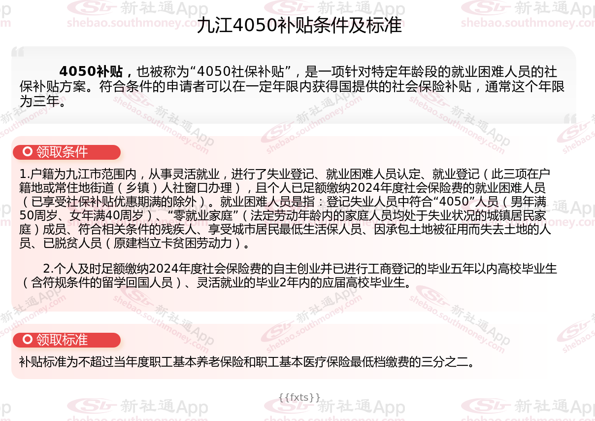 一、九江4050社保补贴标准及条件2025年最新消息