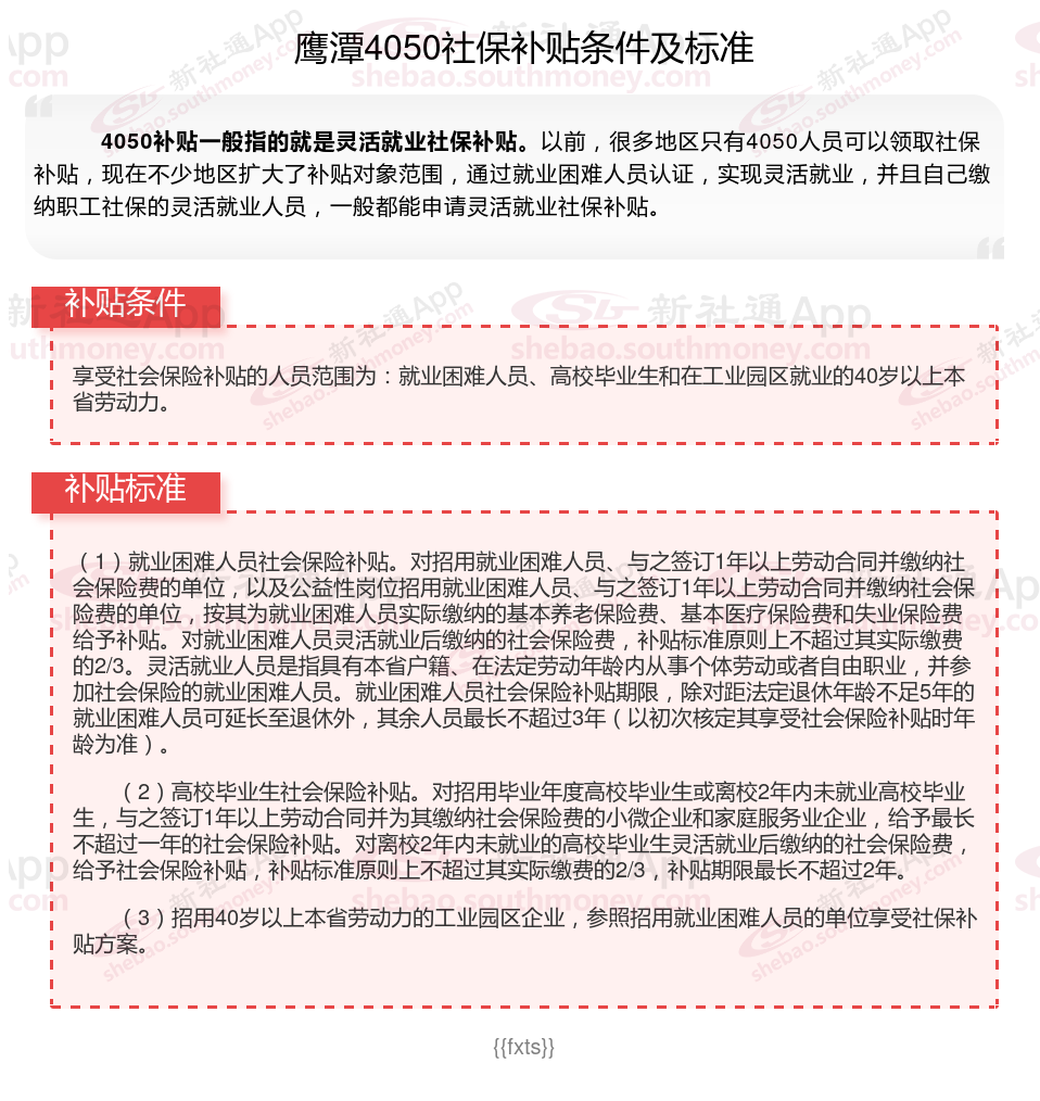 以上就是鹰潭4050灵活就业社保补贴的相关内容,欢迎关注新社通/下载新社通APP了解更多五险一金专业资讯。