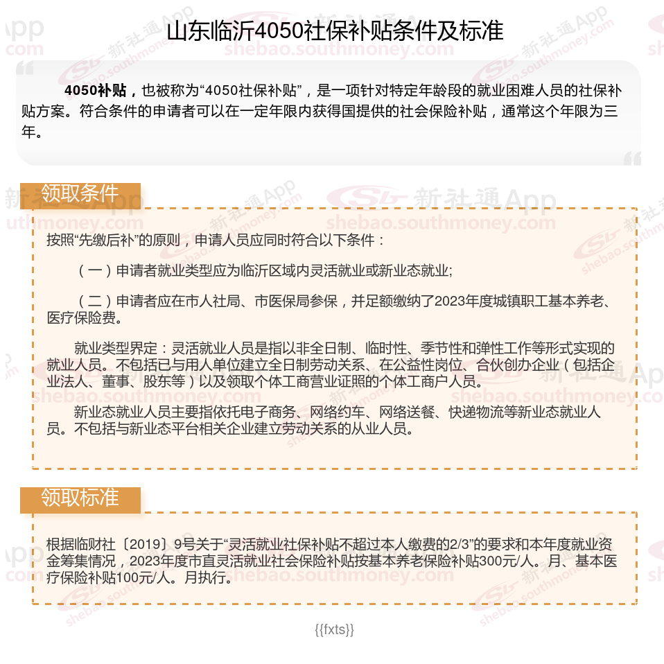一、山东临沂4050社保补贴标准及条件2025年最新消息