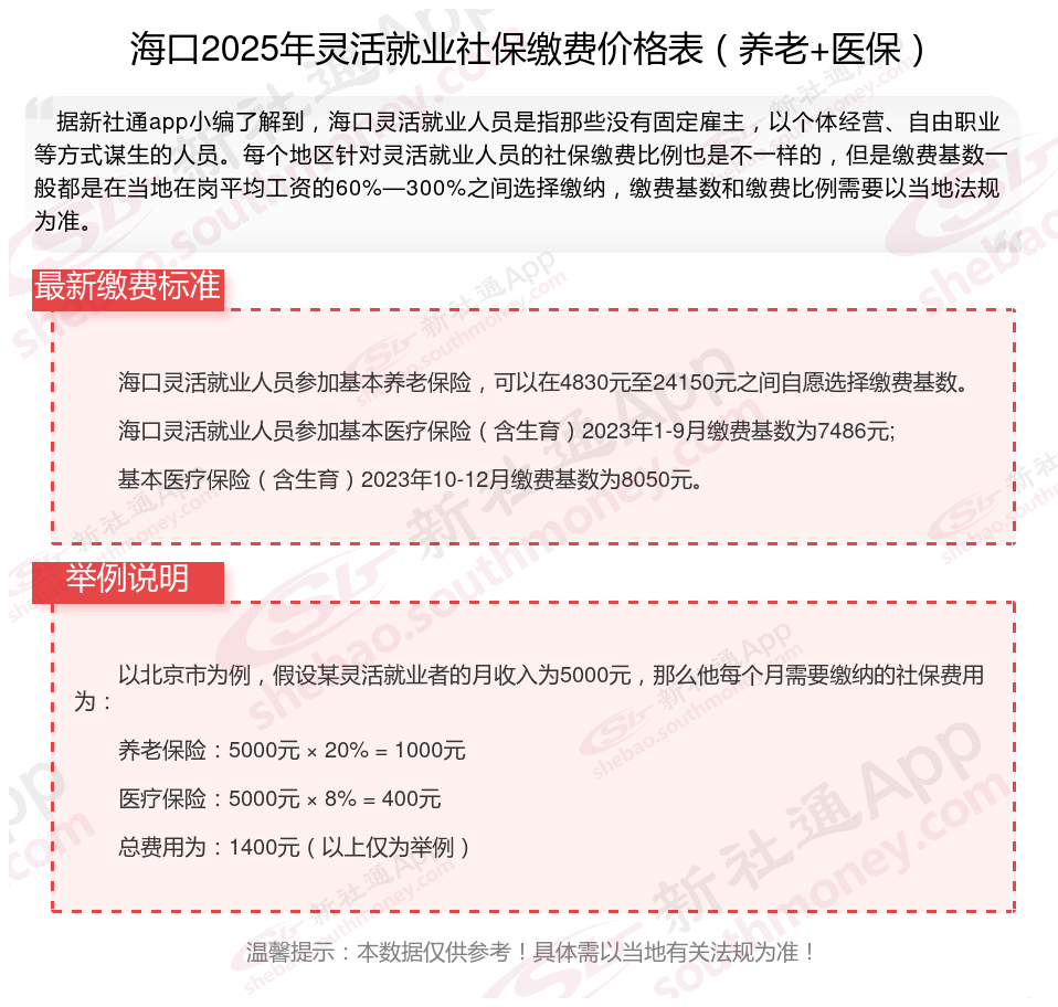 一、海口灵活就业人员社保缴费基数2024-2025年最新标准是多少?灵活就业社保缴费待遇是怎样的?