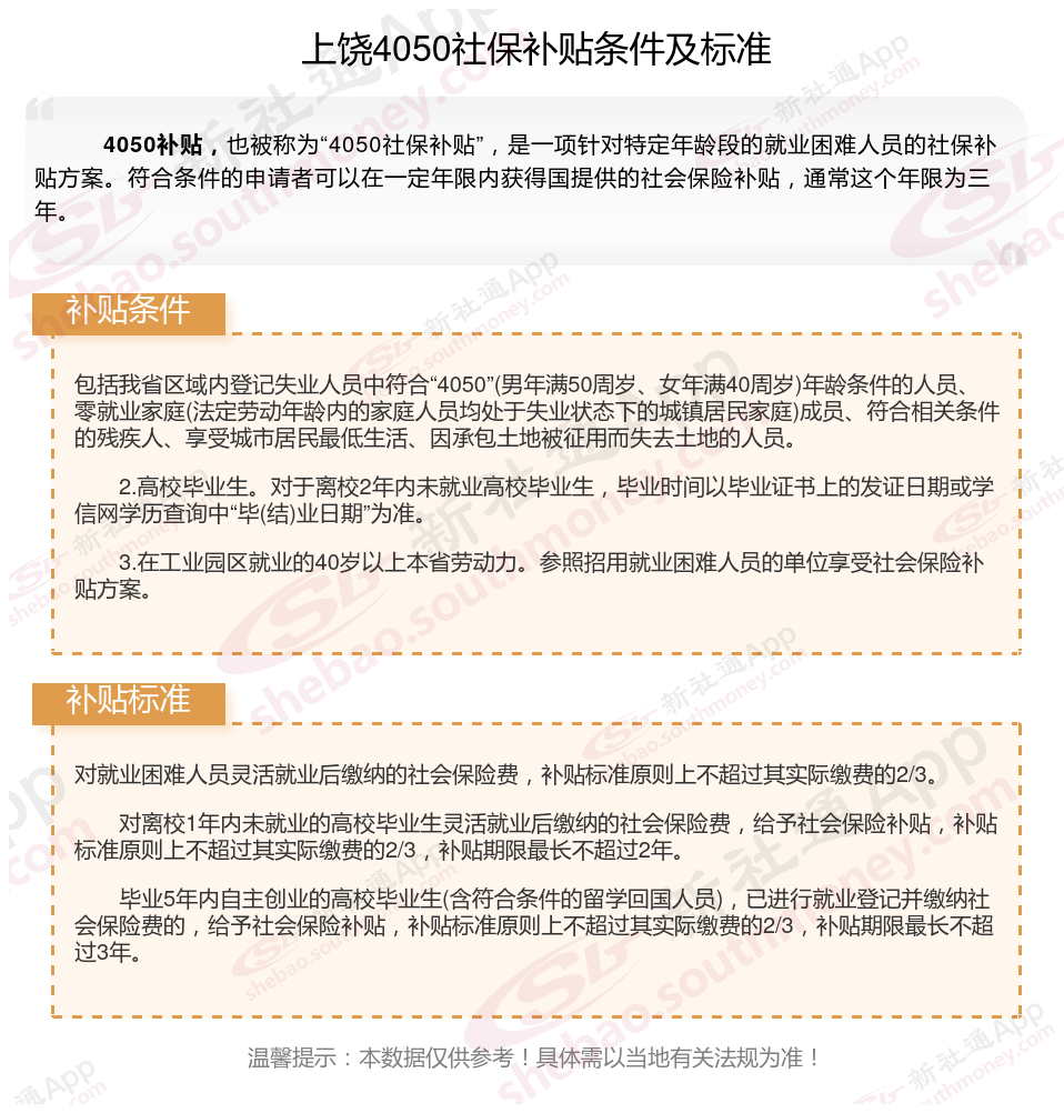 以上就是上饶4050灵活就业社保补贴的相关内容,欢迎关注新社通/下载新社通APP了解更多五险一金专业资讯。