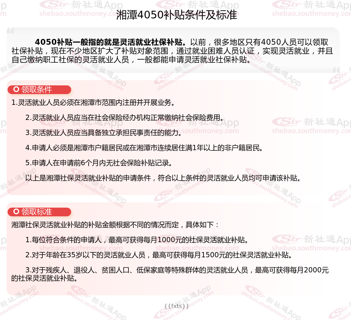 一、2025年湘潭4050社保补贴标准及条件是多少?