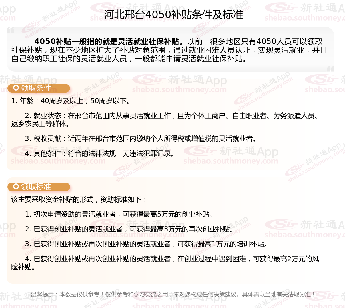 以上就是河北邢台4050灵活就业社保补贴的相关内容,欢迎关注新社通/下载新社通APP了解更多五险一金专业资讯。