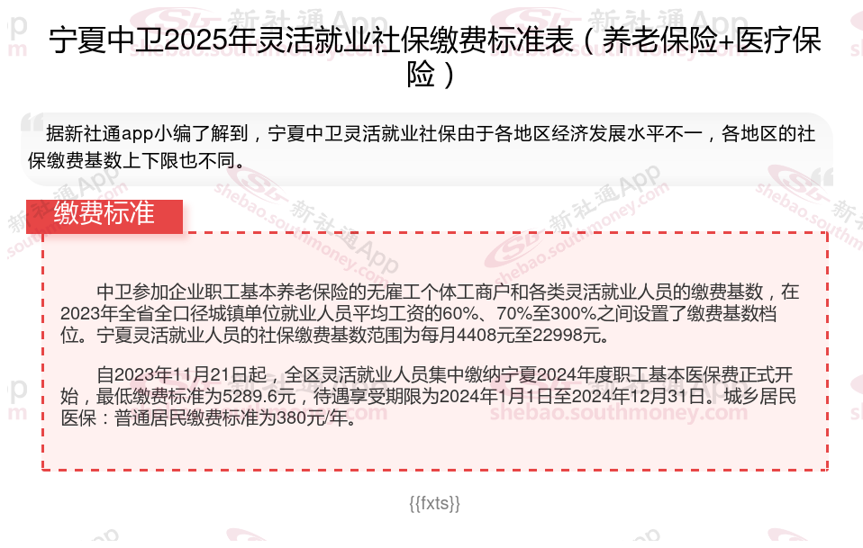 据新社通app数据显示,宁夏中卫养老保险缴费基数2024-2025年最新标准如下: