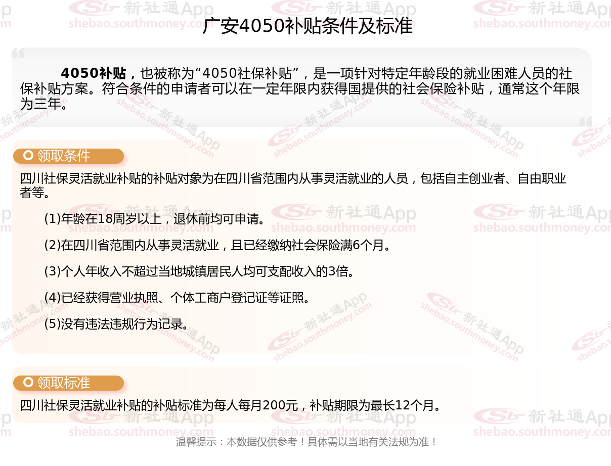 二、广安4050社保补贴多少钱一个月,广安4050社保补贴新规2025年最新标准