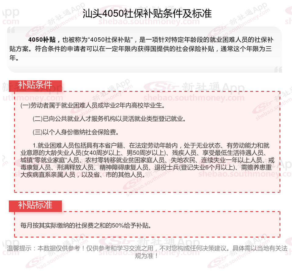 一、2025年汕头4050社保补贴标准是怎么样的?汕头4050一年可拿多少钱?