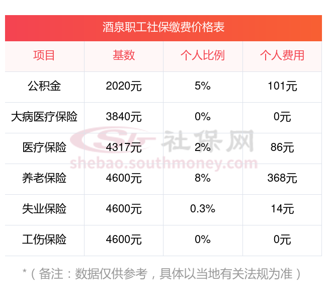 酒泉社保多少钱一个月?下面和社保丫丫一起来看看2025年酒泉最低标准社保费用明细参考,新社通app-社保缴费查询工具提供的最新数据如下: