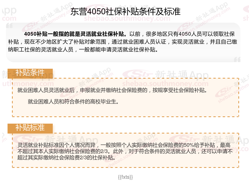 以上就是东营4050灵活就业社保补贴的相关内容,欢迎关注新社通/下载新社通APP了解更多五险一金专业资讯。