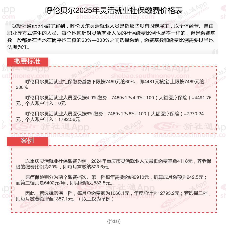 三、呼伦贝尔2025年灵活就业社保缴费基数及比例最新消息