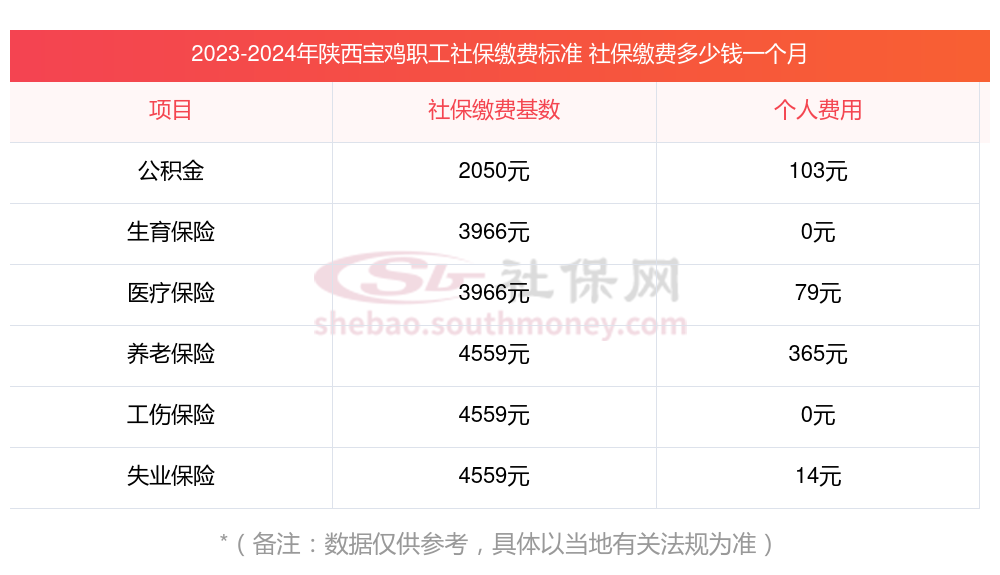 2025年陕西宝鸡社保缴费多少钱?下表是2024-2025年陕西宝鸡社保费用明细参考,新社通app-社保缴费查询工具提供的最新数据如下: