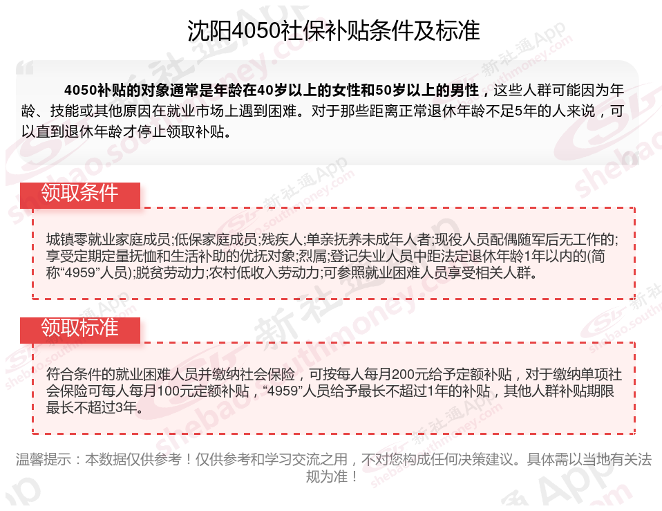 一、沈阳4050社保补贴标准及条件2025年最新消息