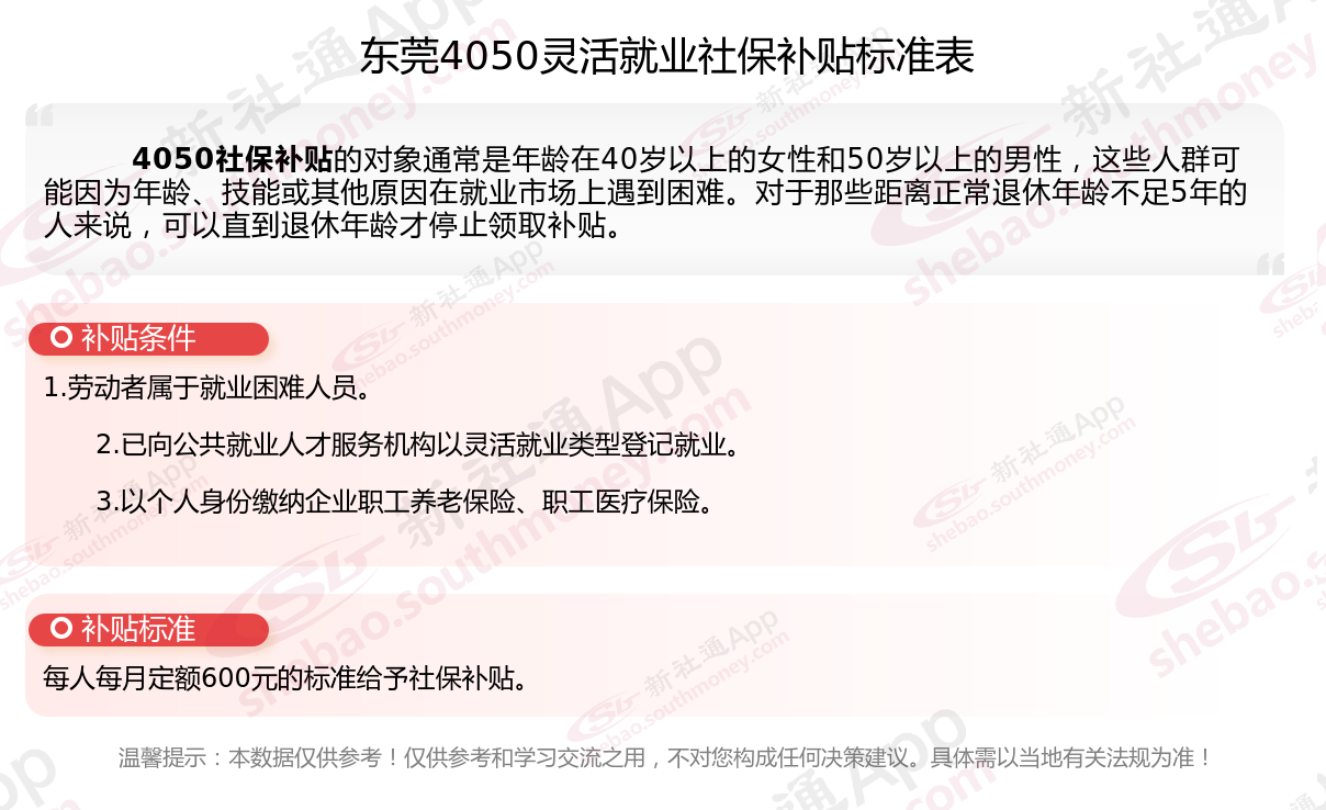 一、东莞4050社保补贴标准及条件2025年最新消息
