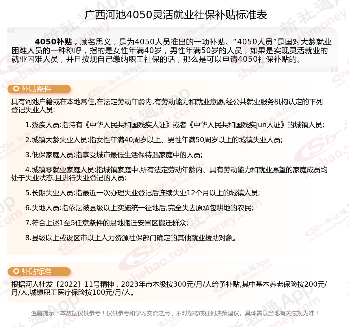以上就是广西河池4050灵活就业社保补贴的相关内容,欢迎关注新社通/下载新社通APP了解更多五险一金专业资讯。