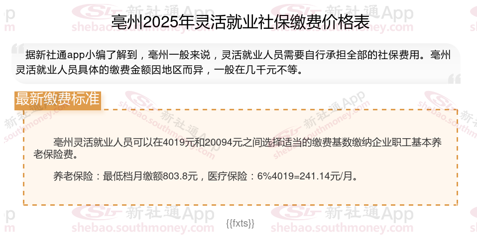 亳州灵活就业社保缴费标准来了 灵活就业社保最低要交多少钱?根据新社通app-社保缴费查询工具提供的最新数据如下: