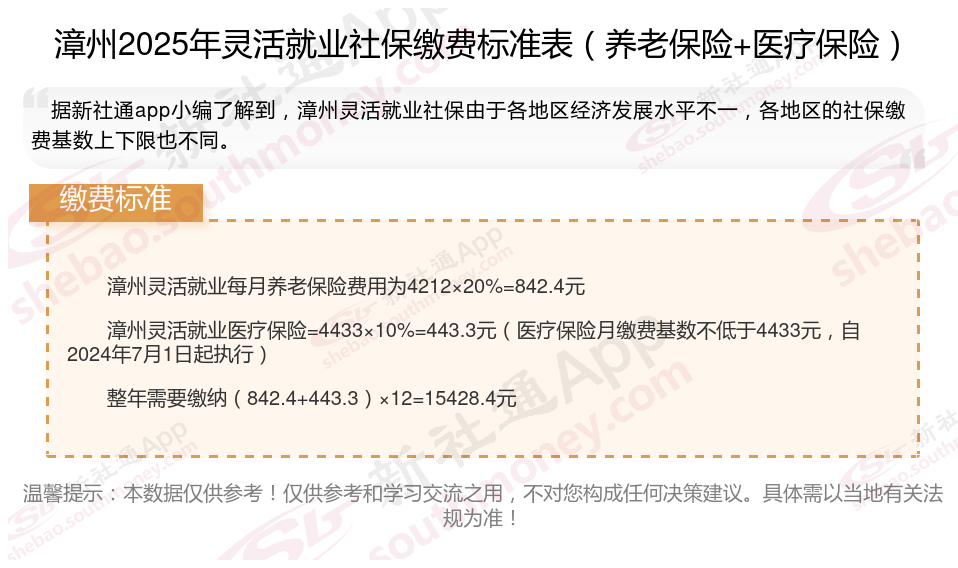 据新社通app数据显示,漳州灵活就业养老保险缴费基数2024-2025年最新标准如下: