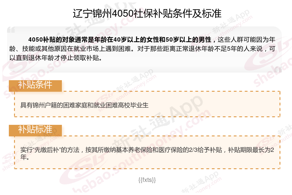 一、辽宁锦州4050社保补贴标准是什么?附条件
