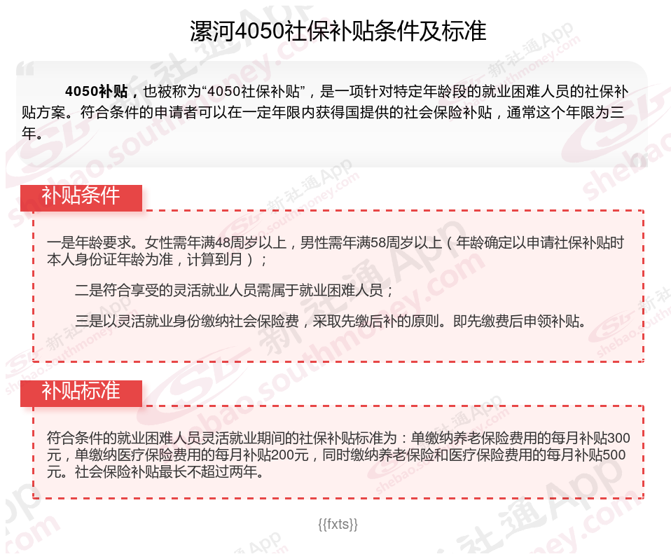 二、漯河4050社保补贴标准及条件(2025年最新)