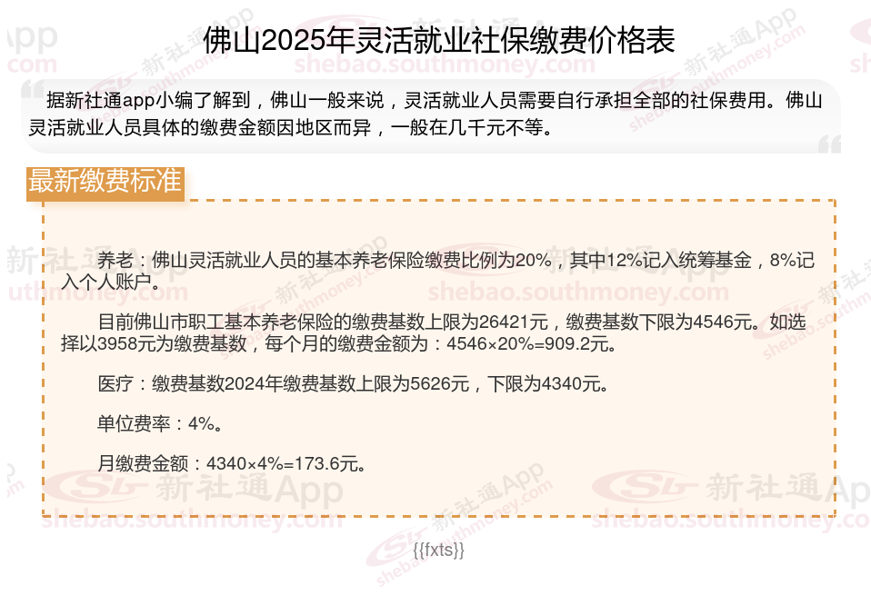 随着经济的发展和社会的进步,灵活就业人员越来越多,但是很多人不知道如何缴纳社保。本文将介绍2025年佛山灵活就业人员社保缴费基数及如何缴纳社保,能领取多少钱,帮助大家更好地了解灵活就业社保,随着新社通APP小编一起了解最新资讯吧。