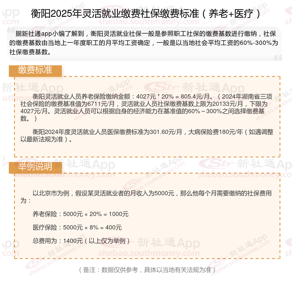 据新社通app数据显示,衡阳灵活就业养老保险缴费基数2024-2025年最新标准如下: