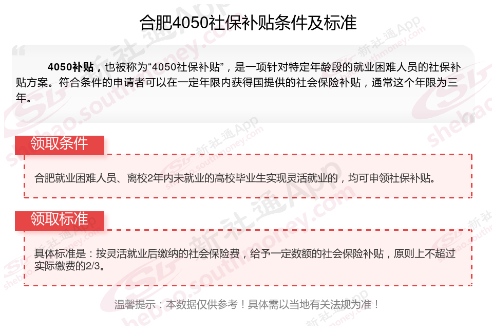 二、合肥4050社保补贴标准及条件(2025年最新)