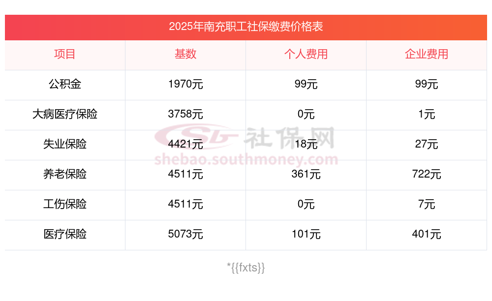 2025社保交多少钱?下表是2025年南充社保费用明细参考,新社通app-社保缴费查询工具提供的最新数据如下: