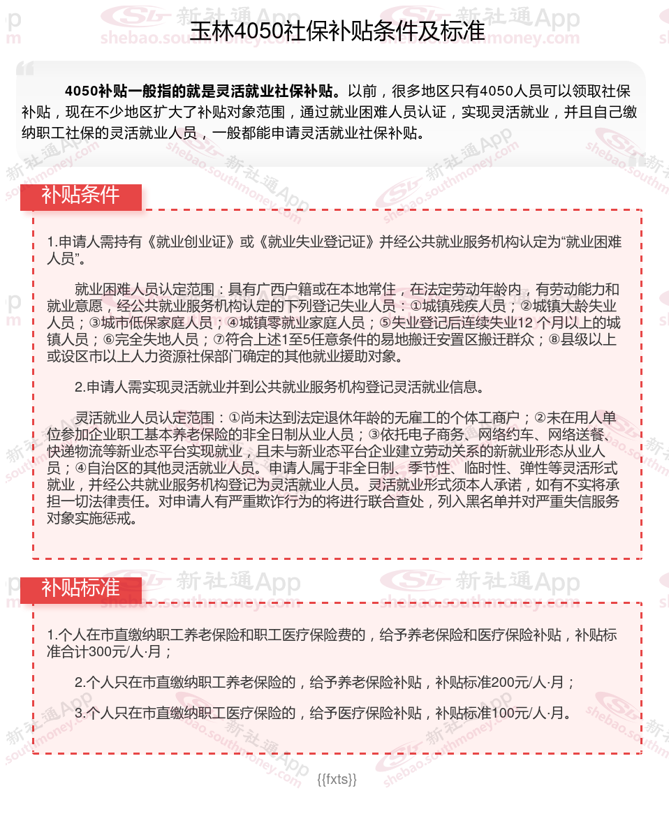 以上就是玉林4050灵活就业社保补贴的相关内容,欢迎关注新社通/下载新社通APP了解更多五险一金专业资讯。