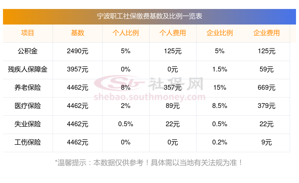 2025年宁波社保缴费多少钱?下表是2024-2025年宁波社保费用明细参考,新社通app-社保缴费查询工具提供的最新数据如下: