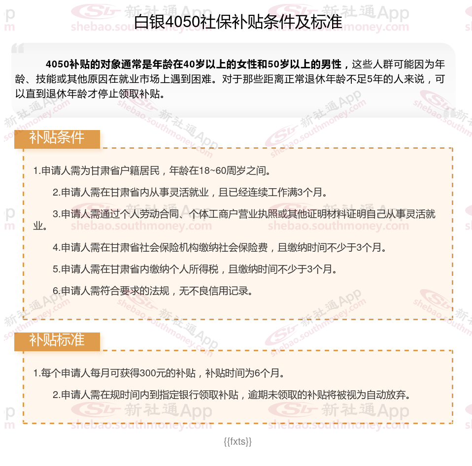 2025白银灵活就业4050社保补贴是一项面向特定年龄段的就业困难人群的社会保险补贴。