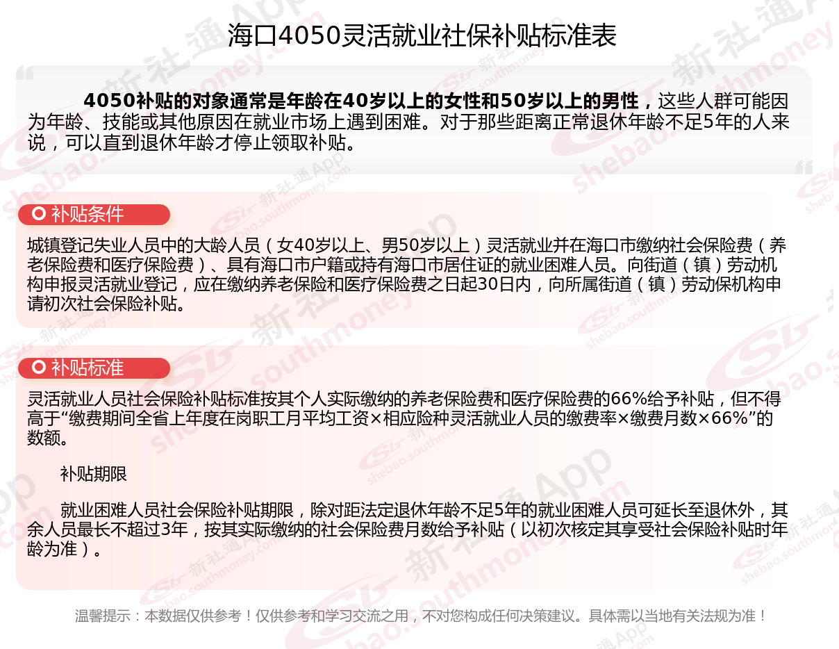 以上就是海口4050灵活就业社保补贴的相关内容,欢迎关注新社通/下载新社通APP了解更多五险一金专业资讯。