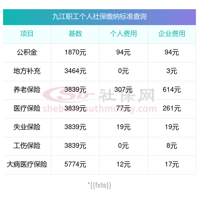 2025年九江社保缴费多少钱?下表是2023-2024年九江社保费用明细参考,新社通app-社保缴费查询工具提供的最新数据如下: