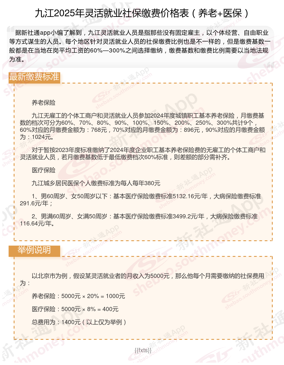 一、2025年九江灵活就业社保缴费标准公布啦 九江灵活就业社保多少钱一个月?