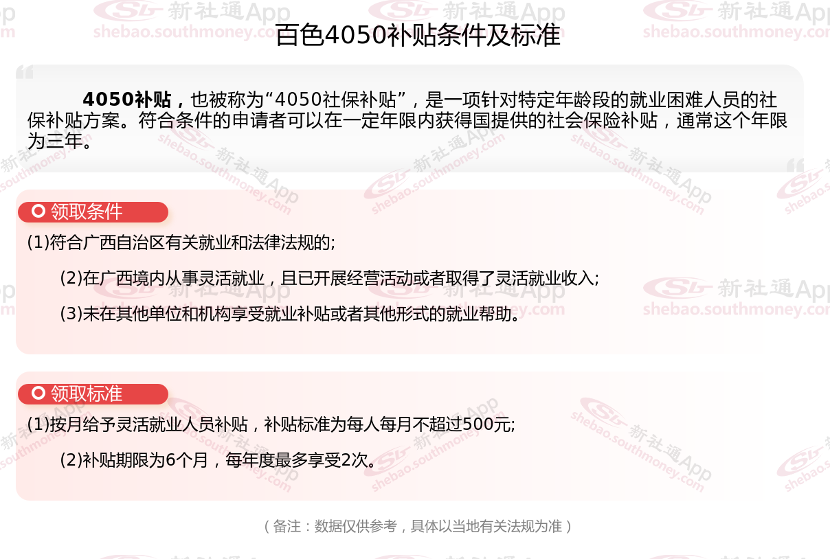 二、百色灵活就业4050社保补贴标准及条件是什么