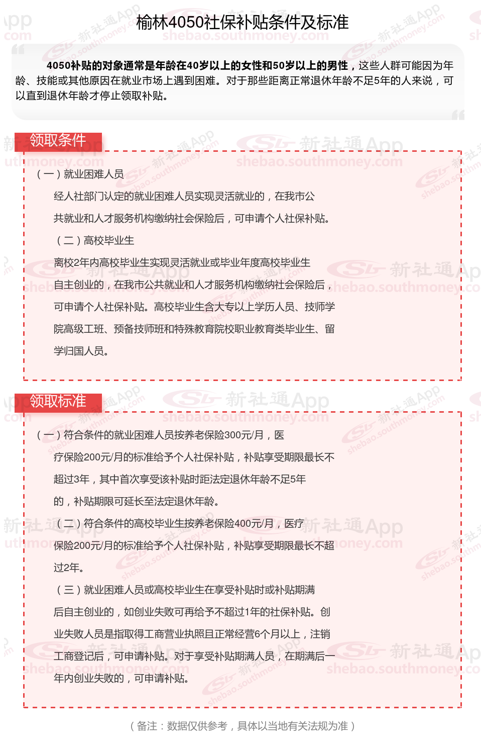 一、2025年榆林灵活就业4050社保补贴标准及条件是什么
