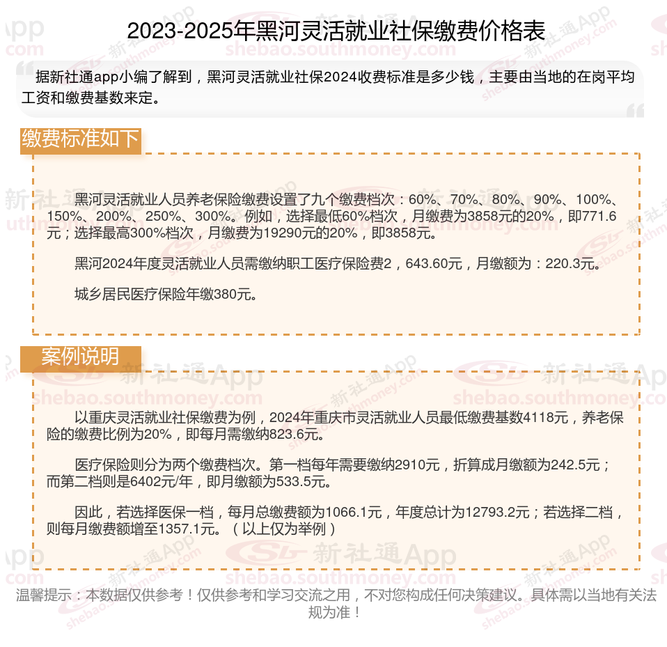 一、黑河灵活就业人员社会保险缴费档次表,2025年最新个人社保养老保险缴费标准一览