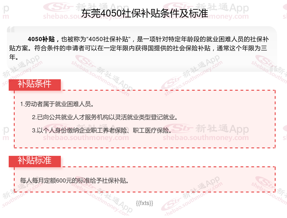 二、2025年东莞4050社保补贴多少钱?4050社保补贴领取条件什么?