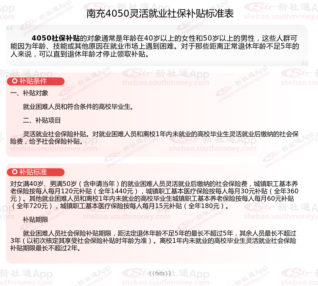 以上就是南充4050灵活就业社保补贴的相关内容,欢迎关注新社通/下载新社通APP了解更多五险一金专业资讯。