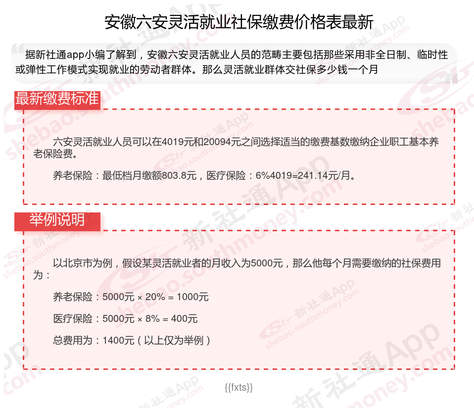 一、2025年安徽六安灵活就业社保多少钱一个月?