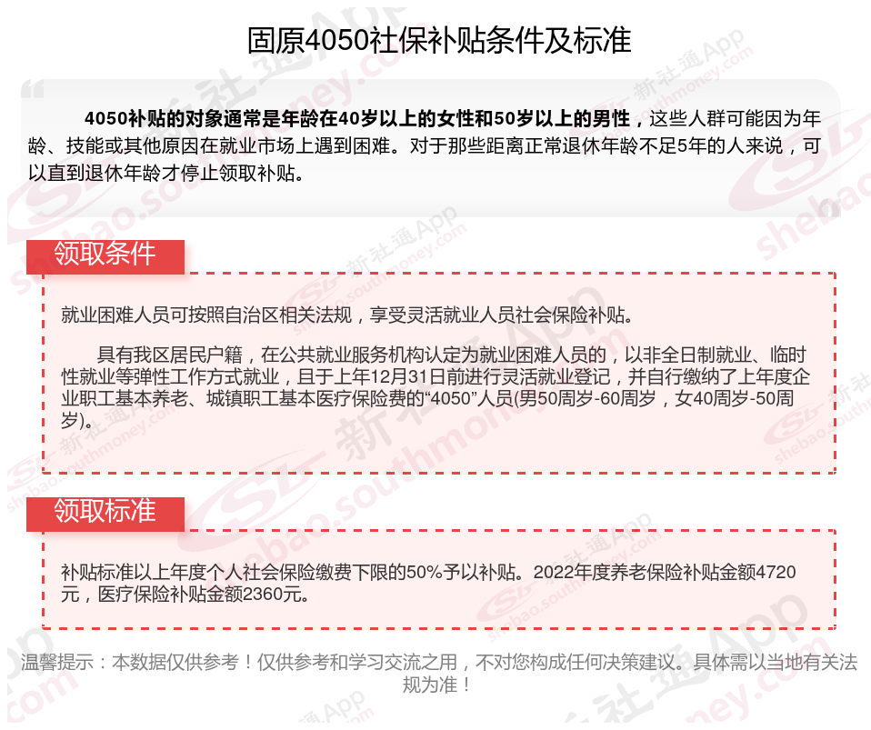 二、2025年固原4050社保补贴标准是多少?领取条件是什么?